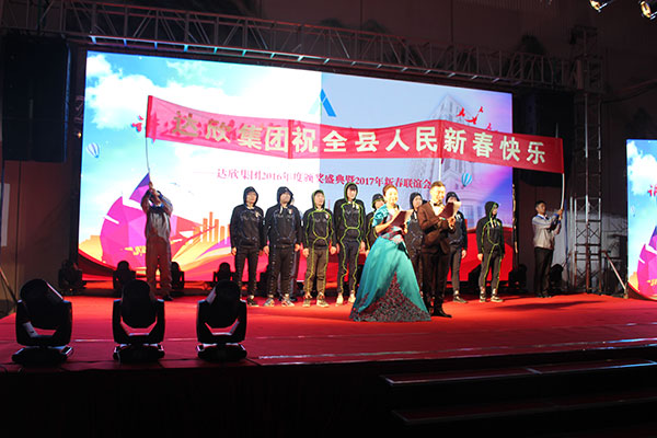 集團高管們在澎湃的“達欣之歌”聲中激情登場(chǎng),公司董事長(cháng)馬和軍進(jìn)行了致辭答謝。他回顧了公司 一年來(lái)所取得的輝煌成績(jì),感謝社會(huì )各界及公司全體同志們的努力,并對公司的未來(lái)發(fā)展之路描繪了藍圖;接著(zhù),縣委書(shū)記陸衛東發(fā)表重要講話(huà), 他指出,建筑業(yè)是我縣的傳統產(chǎn)業(yè),也是一個(gè)富民強勢產(chǎn)業(yè),還是我縣財政收入的重要來(lái)源之一,作為縣內的骨干企業(yè),達欣公司步入了公司歷史以來(lái)發(fā)展最快、榮譽(yù)最高、分配最多、貢獻最大的時(shí)期,他希望公司要加快發(fā)展,高起點(diǎn)定位,突出重點(diǎn),好中求快,實(shí)現達欣新飛躍。