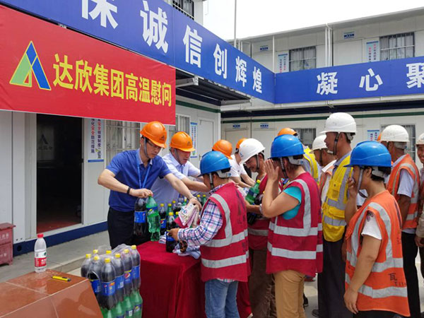 在項目部,集團公司領(lǐng)導將人丹、花露水、雪碧等防暑降溫用品發(fā)放給每一位職工,同時(shí)叮囑大家夏季高溫作業(yè)時(shí),注意防暑降溫。另外,員工養成良好的生活衛生習慣,不疲勞上崗、不帶不良情緒上崗,以良好的精神狀態(tài)上好班。