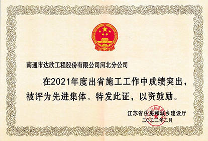 此外,第六黨支部被評為“2021年度江蘇進(jìn)津冀施工優(yōu)秀黨組織”,楊靜、徐培華、吉順祥同志被評為“2021年度江蘇省出省施工先進(jìn)個(gè)人”,徐仁忠同志被評為“2021年度江蘇進(jìn)津冀施工先進(jìn)企業(yè)經(jīng)理”,謝廣財同志被評為“2021年度江蘇進(jìn)津冀施工優(yōu)秀黨務(wù)工作者”,郝路同志被評為“2021年度江蘇進(jìn)津冀施工優(yōu)秀共產(chǎn)黨員”,王順乾、高云青、王愛(ài)軍同志被評為“2021年度江蘇進(jìn)津冀施工優(yōu)秀建造師”,朱玉平、劉剛、張生同志被評為“2021年度江蘇進(jìn)津冀施工先進(jìn)工作者”等榮譽(yù)。