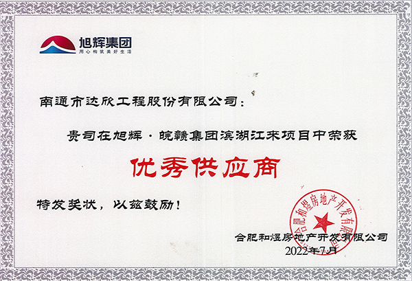 近日,旭輝·皖贛集團對2022年度優(yōu)質(zhì)供應商進(jìn)行表彰,集團第一工程公司在旭輝·皖贛集團濱湖江來(lái)項目中榮獲優(yōu)秀供應商稱(chēng)號。