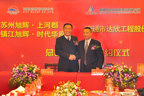 3月20日南通市達欣工程股份有限公司與旭輝集團股份有限公司在上海就蘇州旭輝·上河郡、鎮江旭輝·時(shí)代華府項目舉行合同簽約儀式。旭輝集團董事長(cháng)林中、達欣公司副董事長(cháng)、黨委書(shū)記劉厚純,分別發(fā)表了熱情洋溢的講話(huà)。雙方表示此次總包合同的簽約標志著(zhù)旭輝集團與達欣公司長(cháng)期合作將會(huì )有著(zhù)更為廣闊的空間!蘇州上河郡項目總建筑面積92075m2,由5棟13層小高層住宅、6棟5層商業(yè)用房和一棟幼兒園組成;時(shí)代華府項目總建筑面積161000m2,由9棟32層高層住宅組成。 旭輝集團股份有限公司成立于2000年,是集房地產(chǎn)開(kāi)發(fā)、建筑施工、物業(yè)管理于一體的全國性房地產(chǎn)開(kāi)發(fā)企業(yè),連續5年穩居中國房地產(chǎn)企業(yè)百強。湖南旭湘·華府工程是我公司與旭輝集團的首度合作,我公司項目團隊以良好的配合、優(yōu)質(zhì)高效的速度,贏(yíng)得了建設方與當地建設主管部門(mén)的肯定,贏(yíng)得了市場(chǎng)聲譽(yù),該項目先后獲得“全國AAA級安全文明標準化誠信工地”、湖南省“文明工地”、湖南省“安全標準化示范工程”、長(cháng)沙市“優(yōu)質(zhì)結構”等稱(chēng)號。