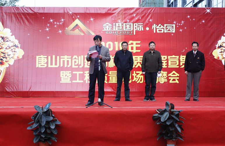 為推進(jìn)實(shí)施名牌戰略,鼓勵施工企業(yè)爭創(chuàng )名優(yōu)工程,促進(jìn)唐山市建設工程結構質(zhì)量不斷提高,市住建局于2010年10月26日在我司承建的金港國際怡園小區項目舉行 “唐山市創(chuàng )建結構優(yōu)質(zhì)工程宣貫會(huì )暨工程質(zhì)量現場(chǎng)觀(guān)摩會(huì )”,市住建局工程處正副處長(cháng)、市建設工程質(zhì)量監督站主要領(lǐng)導及各科室人員出席觀(guān)摩會(huì )。