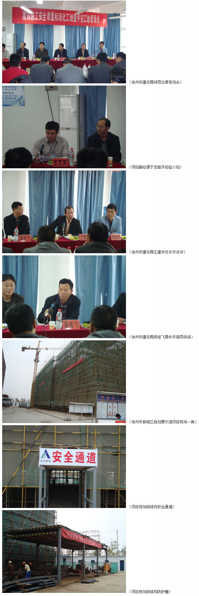 徐州市建設局安監處王建華處長(cháng)在講話(huà)中對本工程“創(chuàng )質(zhì)量安全標準化、平安工地”給予了高度評價(jià),并總結了“八大亮點(diǎn)”:1、現場(chǎng)道路及場(chǎng)地硬化到位;2、農民工學(xué)校的內容具體、真實(shí);3、現場(chǎng)的警示標志形象、生動(dòng),有特點(diǎn);4、腳手架搭設規范;5、現場(chǎng)排水溝及集水井嚴格按照JGJ59—99的要求設計、施工;6、定型化產(chǎn)品(組裝式鋼結構防護棚)的投入使用;7、現場(chǎng)的臨邊防護規范;8、設置曝光欄有特點(diǎn),做到處罰有根據。